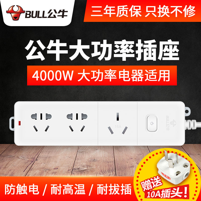 Bull air conditioning socket special three-hole 16A plug plug board high-power extension line 4000W tow wiring board