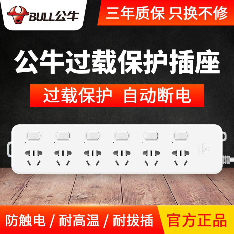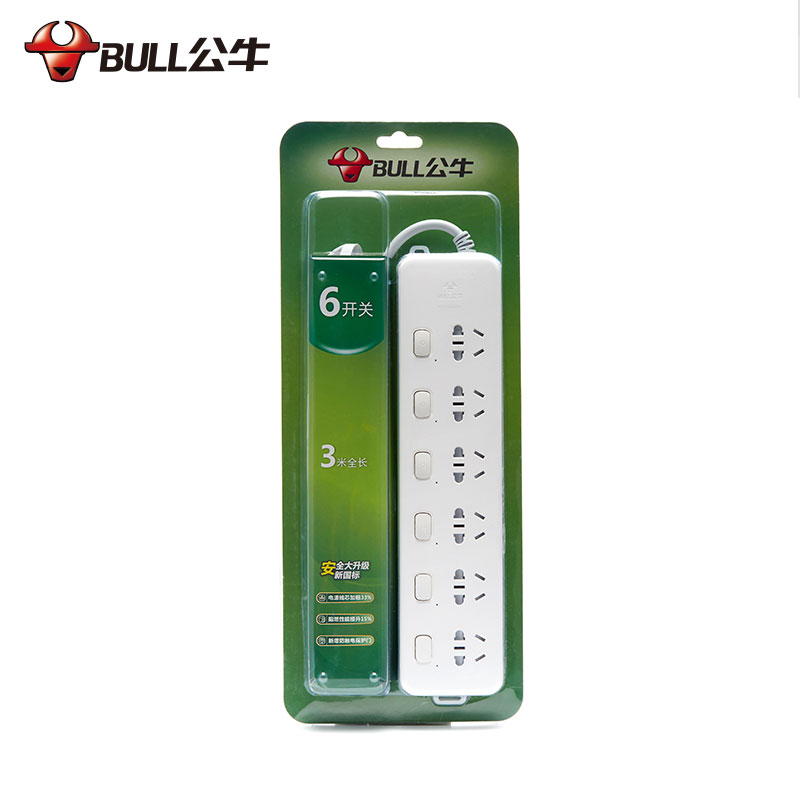 Bull socket multi-function row plug board with independent switch Household plug cable board 3 meters power extension cable