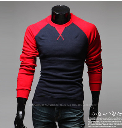 2022 Men's Autumn T-shirt Blue and Black Colorblock Fashion Raglan Sleeve Design Men's Stretch Cotton Slim Long Sleeve T-Shirt
