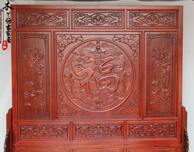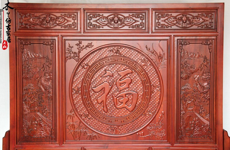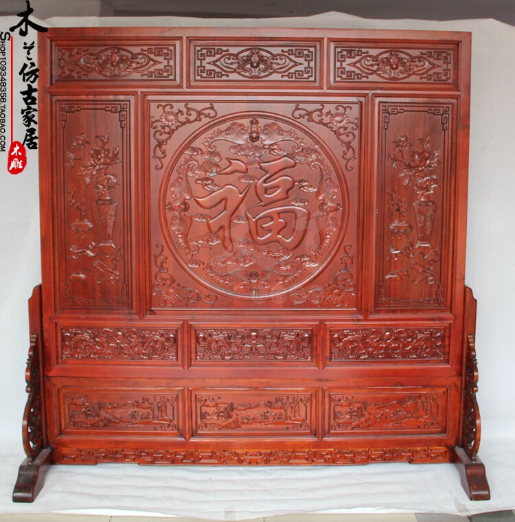 Dongyang wood carving five blessings Linmen incense camphor wood solid wood seat screen screen Chinese antique screen porch partition decoration