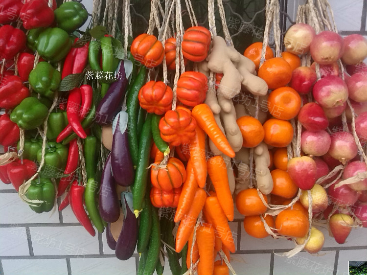 4 4 large potatoes 5 small pumpkins 7 red spikes 4 large pomegranate 4 large oranges 5 large carrappers 4 large eggplants 5 large strawberries 5 large cucumbers 8 large peanuts 7 green pointed pretzels 5 red persimmons
