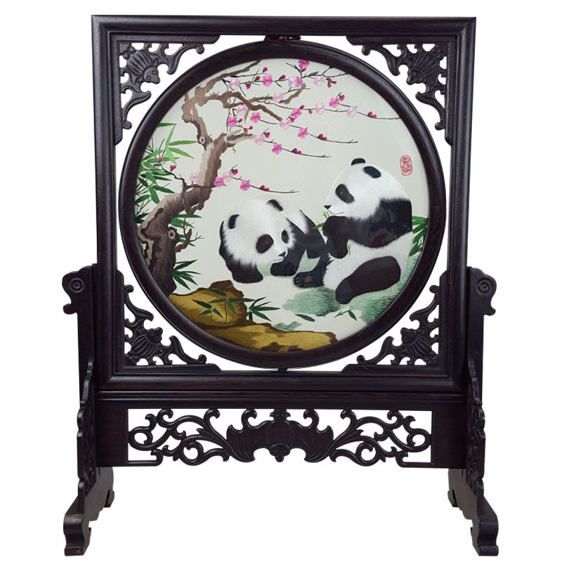 Panda Shu Embroidered Double-sided Embroidered Table Screen All Handmade Mulberry Silkworms Embroidered Genuine Silk Embroidered Craft Gifts Hem of Folk Gifts