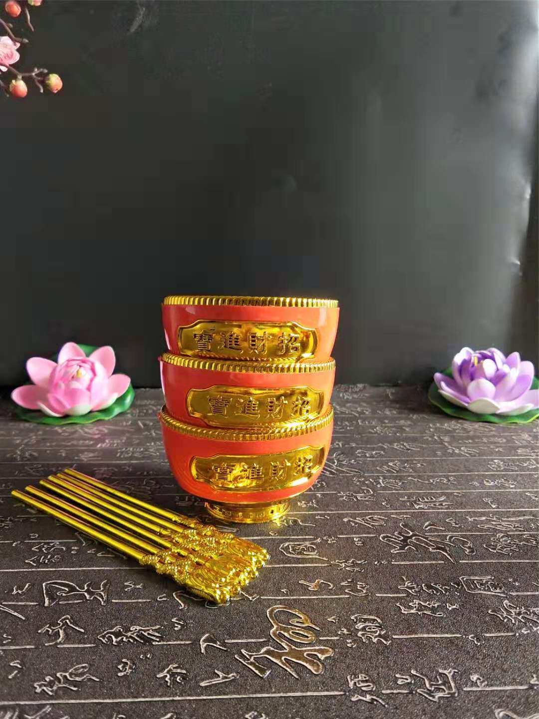 Large recruitment of the gold bowl (1) large-scale money bowl (3) small cash bowl (1) small number to recruit the gold bowl (3) gold faucet chopsticks a pack (3 pairs) red faucet chopsticks one pack