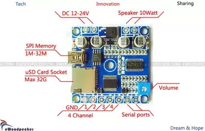 Woodpecker electronic multifunctional MP3 audio decoding board 10W power amplifier SPI memory U disk TF SD card