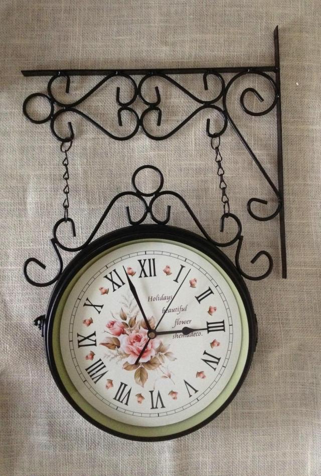 Thai imports-iron art lapel coffee colour-Shop-style glass bifacial hanging clocks Thai characteristics Thai comfortable