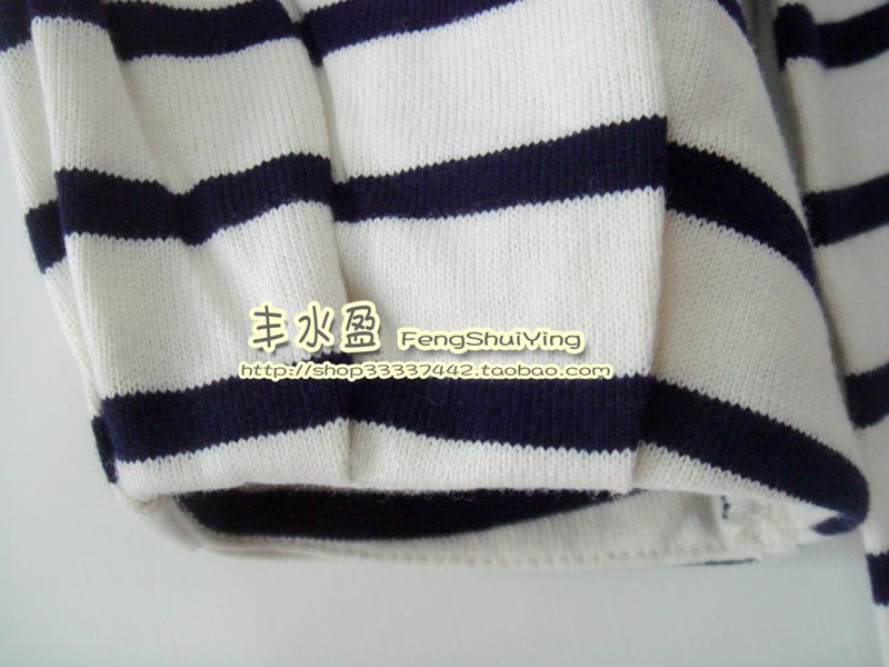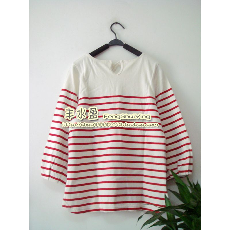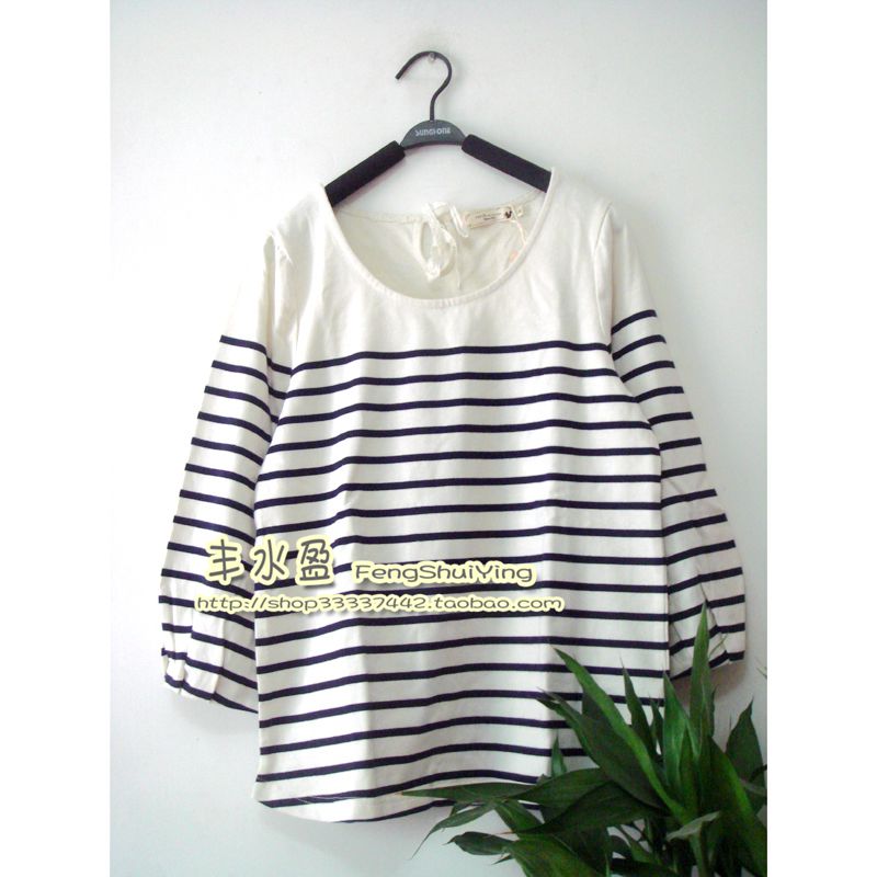 Spring Autumn Foreign Trade Export Japan Single Sand Wash Pure Cotton Striped Ruffle Sleeves T-shirt