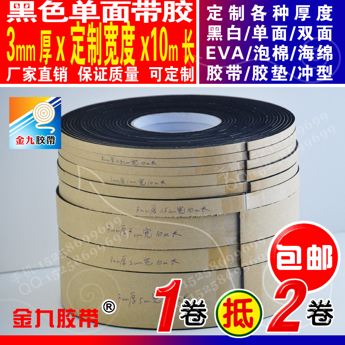 Black single-sided EVA foam sponge adhesive tape anti-slip anti-slip high self adhesive strip 3mm thick 6mm 6mm 10m long can cut