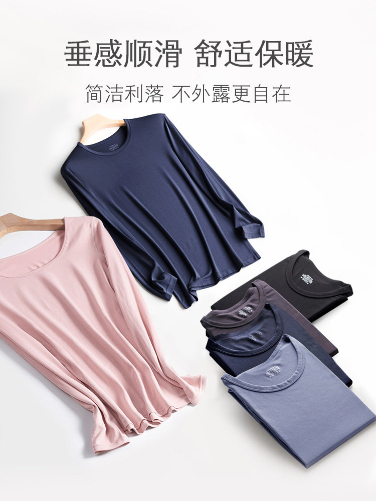 Olinya Thermal Underwear Bamboo Fiber Round Neck Medium Thick Women's Men's Warm Suit Couple Longwear Long Johns