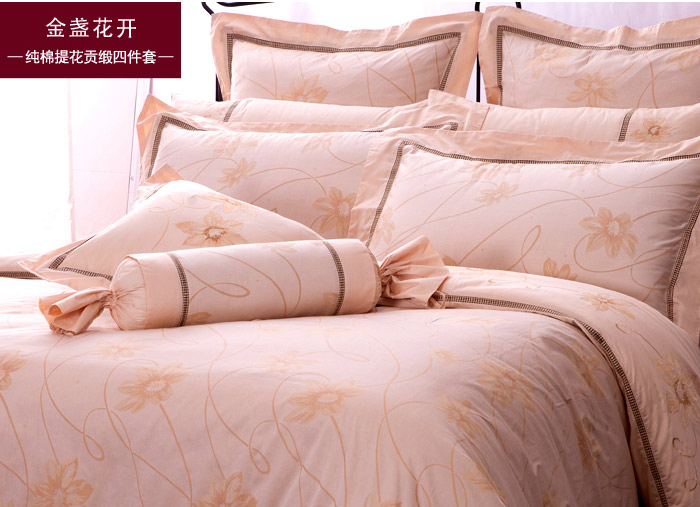 Gold Number Ex Poetry Home Pure Cotton Bed Pint Finish Satin Four-Piece Bed Bag Set Jacquard Noodles Golden Flowering K036 High Gear Gift