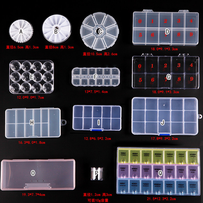 Dot rectangular transparent plastic Diamond wearing armor piece accessories jewelry triangle disc storage box nail tool