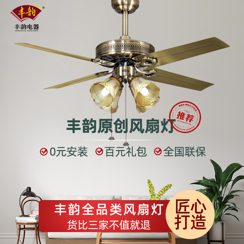 Fengyun American dining room ceiling fan lamp Living room ceiling Fengyun simple bedroom small fan chandelier fashion LED light fan