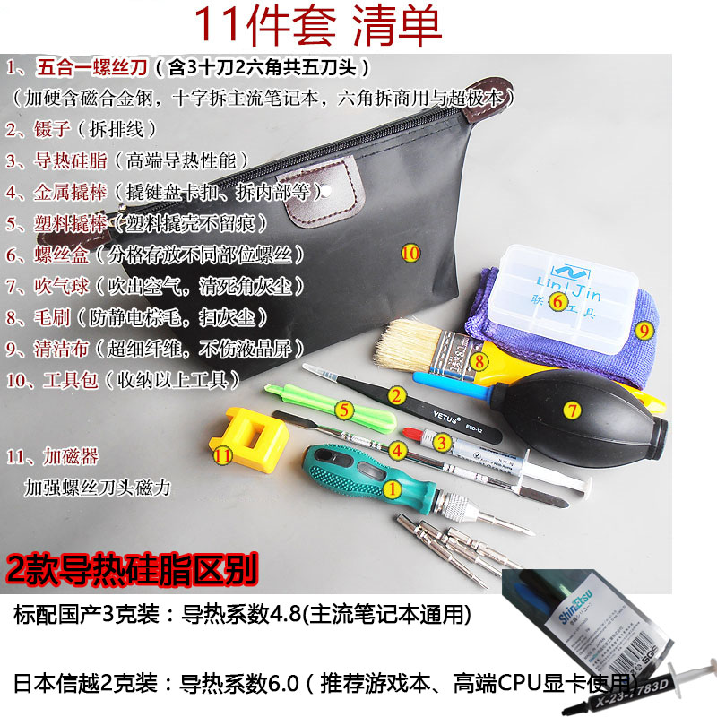 11-piece set (compatible with all brands of notebooks) 11-piece set Japan Shin-etsu silicone grease 12-piece set (compatible with desktop + notebook) 10-piece set (cross screw model)