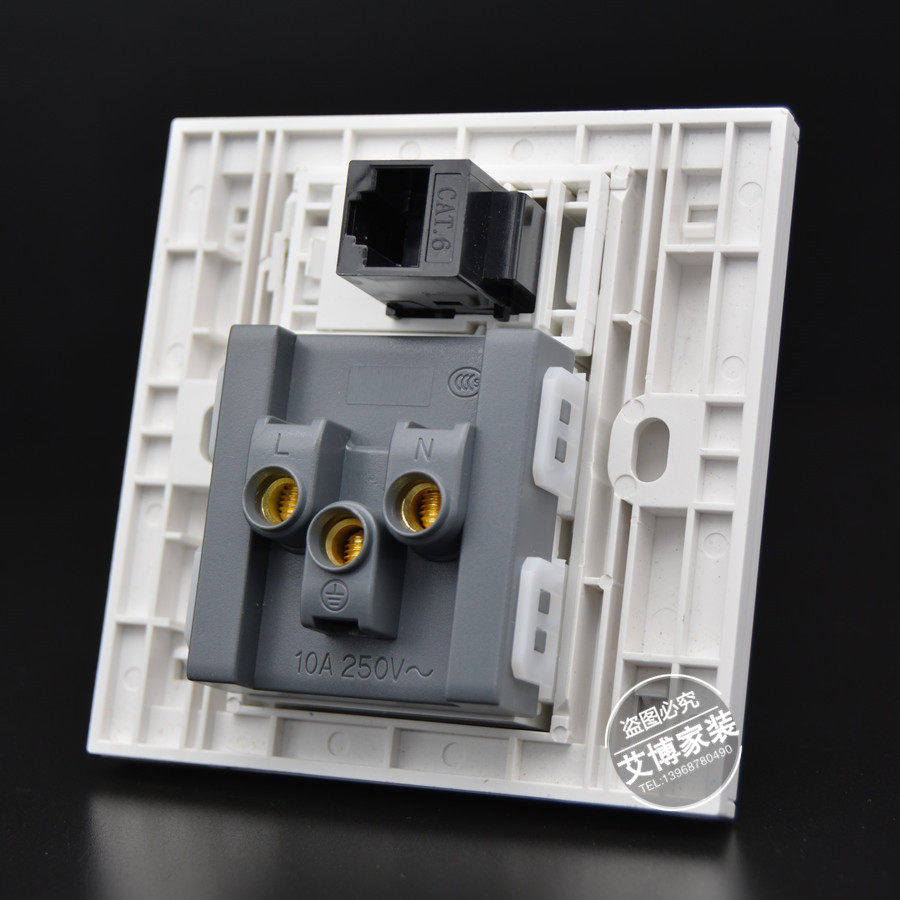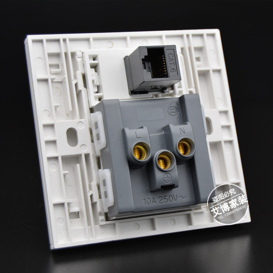 Type 86 wall computer power panel CAT6 straight plug 1000000000000000 six type network 23 plug five-hole power socket