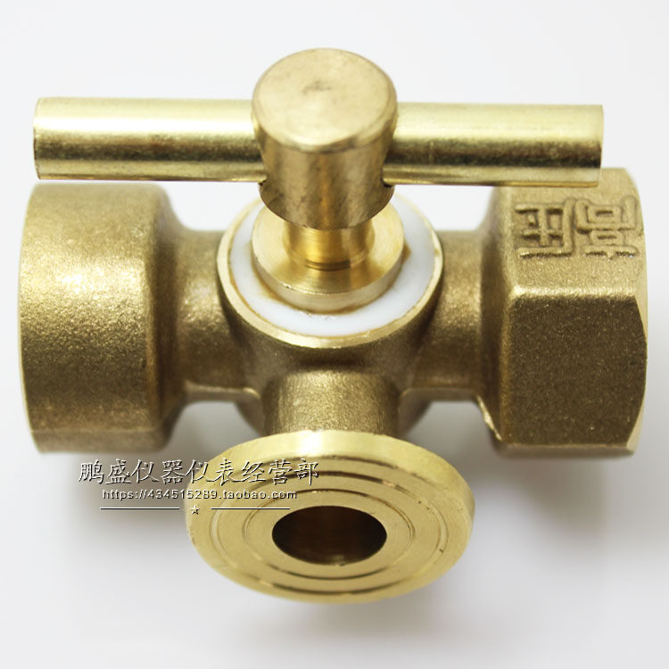 Thickened all copper Cork Three-way stopcock valve pressure gauge boiler copper Cork with exhaust hole 4 points -M20x1.5