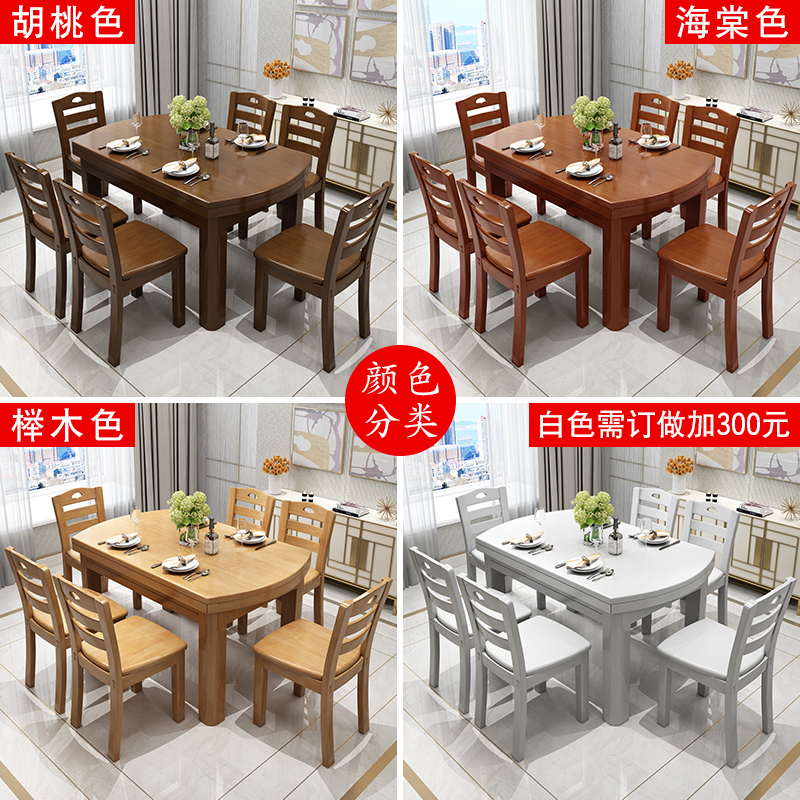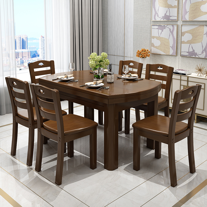 All solid wood dining table and chair combination Chinese folding telescopic dining table square and round dual-use small apartment 4 chairs 6 chairs modern simplicity