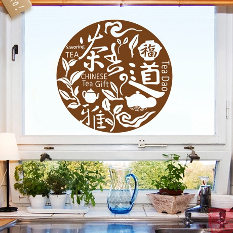 Glass sticker tea element tea house tea shop tea shop fashion window decoration living room background wall sticker