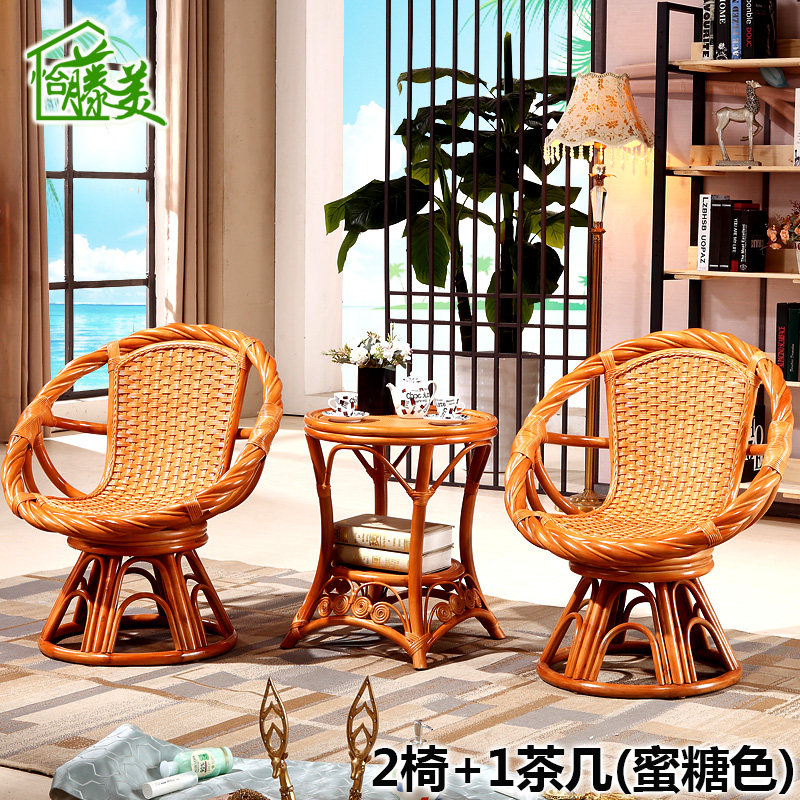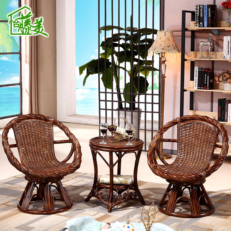 Yitomei balcony real rattan table and chair rattan leisure rattan chair swivel chair rattan chair coffee table three-piece combination