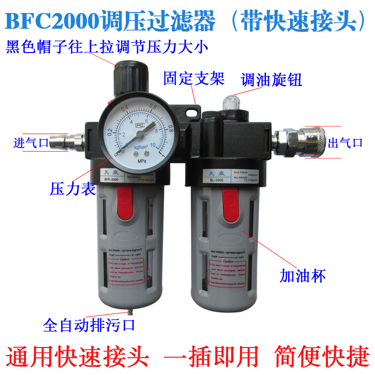Air source treatment two-piece pressure regulating oil-water separator air filter automatic drainage air pump compressor