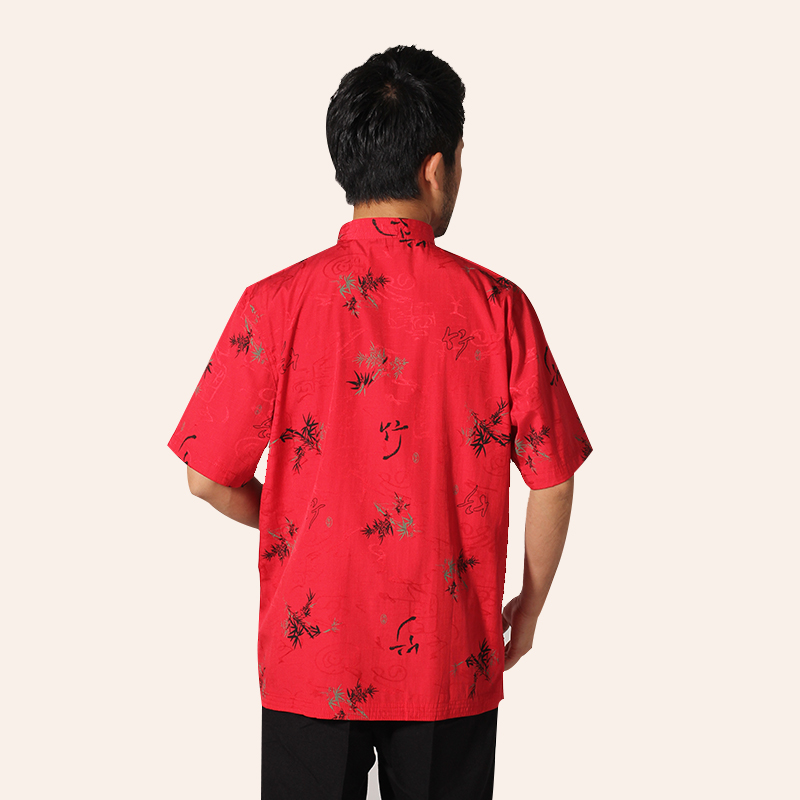 Miny also Tang Costume National Wind Print Bamboo Leaves Chinese Short Sleeves Ethnic Collar Summer Dress Male Chinese Style Chinese Style Father Costume