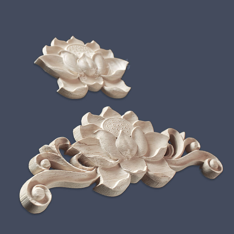 Dongyang woodcarved film European Lotus Lotus solid wood small applique patch corner flower cabinet door furniture background decoration