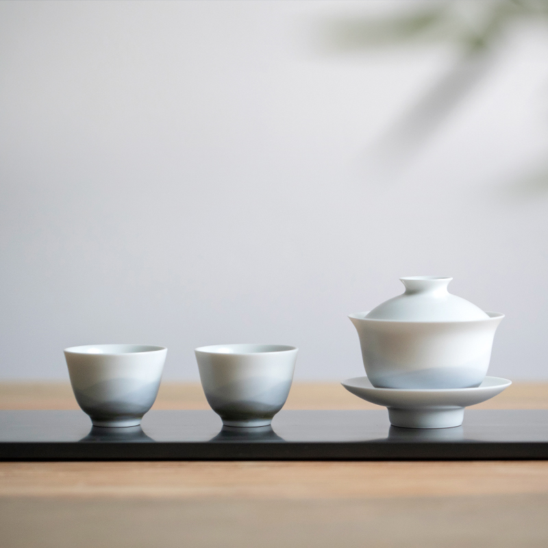 Landscape room original design far mountain teapot ink style tea set Jingdezhen Ceramics White Teapot Gift customization