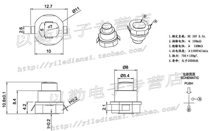 High quality self-locking switch On and off Small circular push button switch diameter 11mm two-pin small push button switch