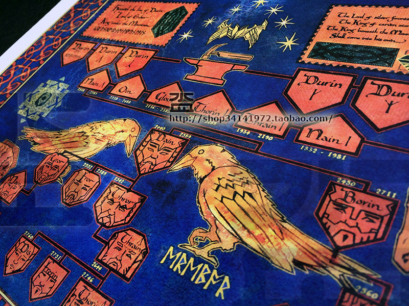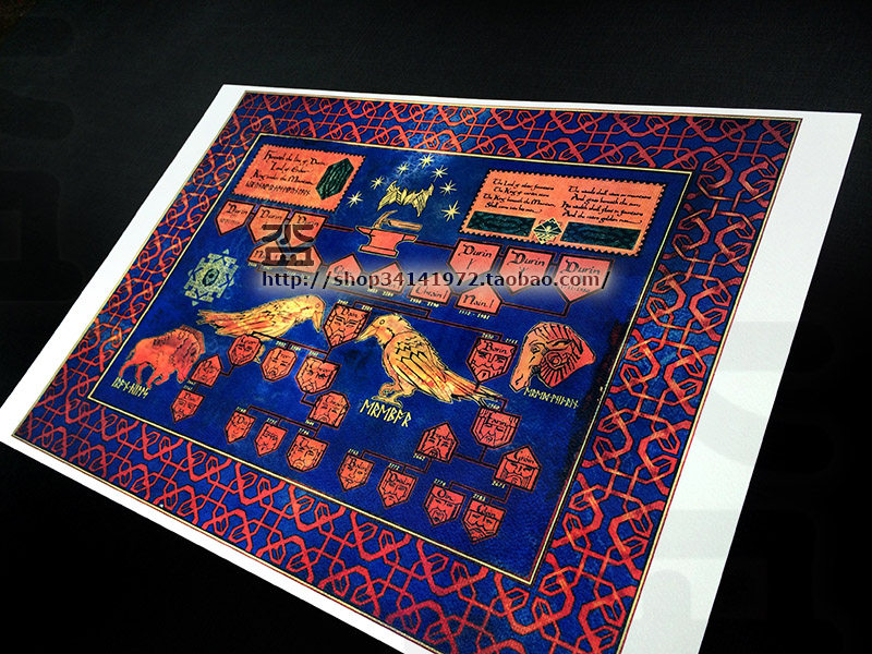 The Hobbit Lord of the Rings Middle Earth Map (Dwarf King Thorin-Doolin Royal Genealogy) Decorative Painting