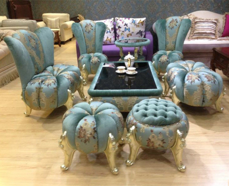 HOT Special Offer Light European Dark Green Kit Furniture Combination Hotel Standard Small Apartment Sofa Stool Pumpkin Stool