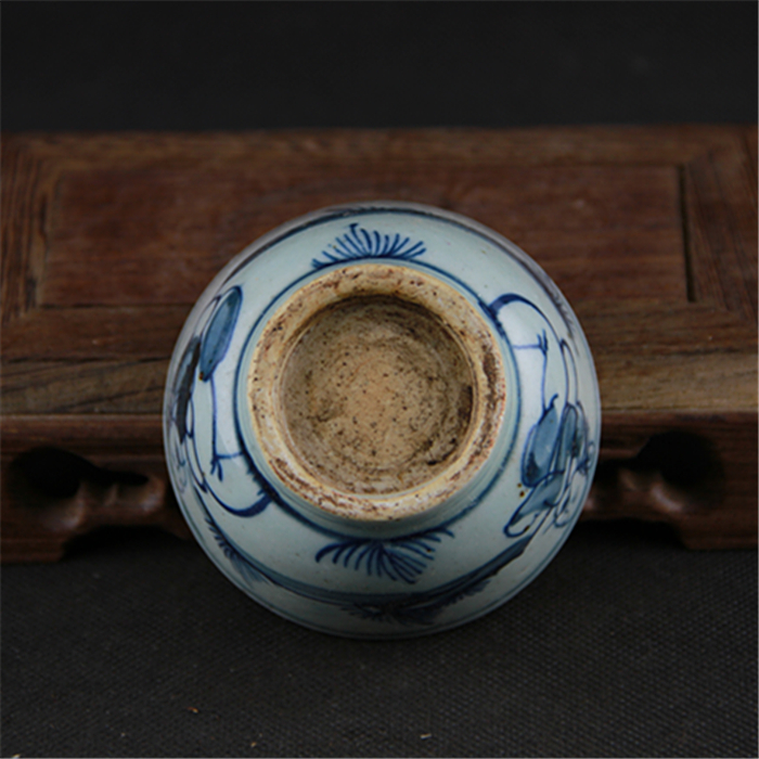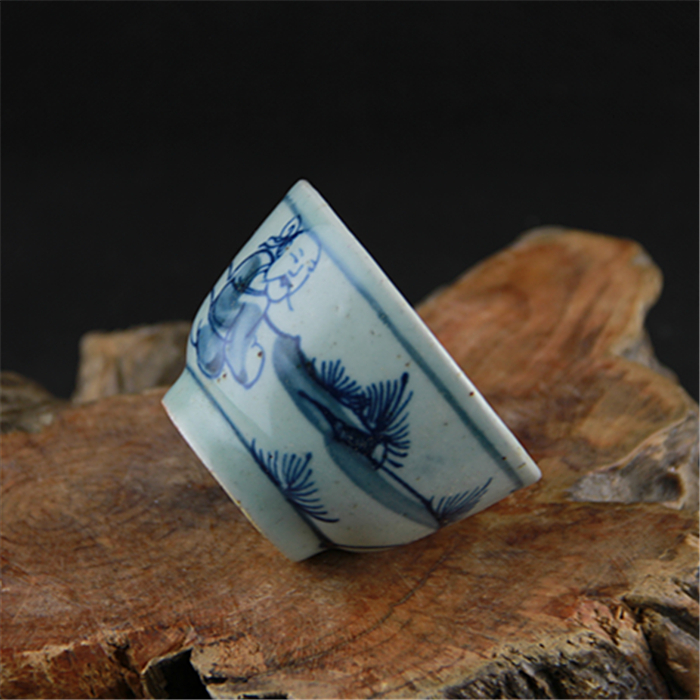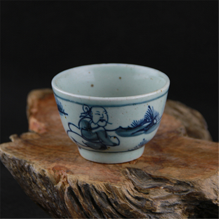 Antique porcelain Minqing flower old man grain small wine glass tea cup full handmade to make ancient play antique collection