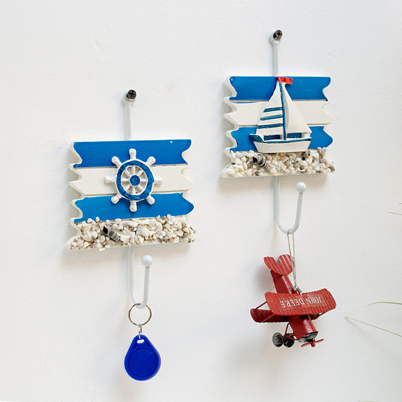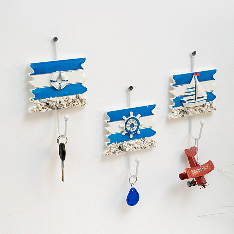 Mediterranean style blue and white single small hook coat rack creative clothing store porch door wall key hook