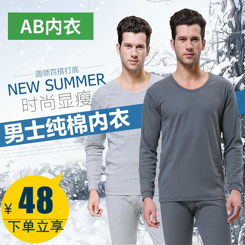 AB cotton autumn clothes sanitary pants men's suit round neck base thin section middle-aged cotton sweater men's thermal underwear winter