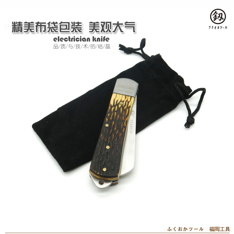 Japan Fukuoka tools high-grade stainless steel electrical knife straight edge arc curved edge cable knife stripping knife imported technology