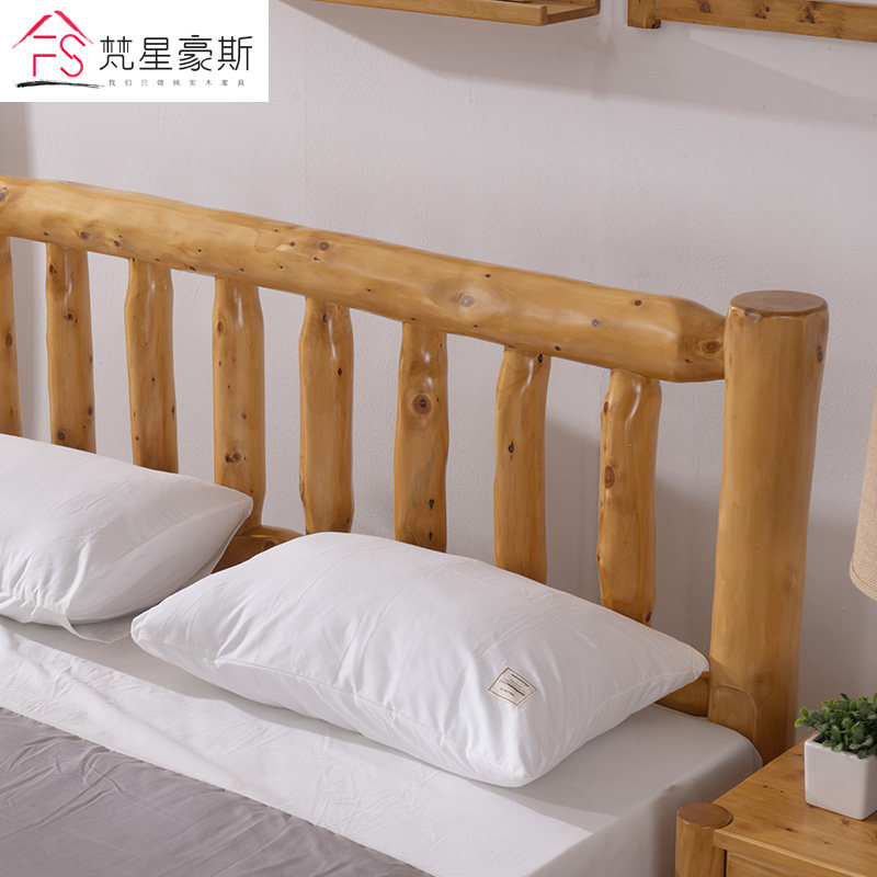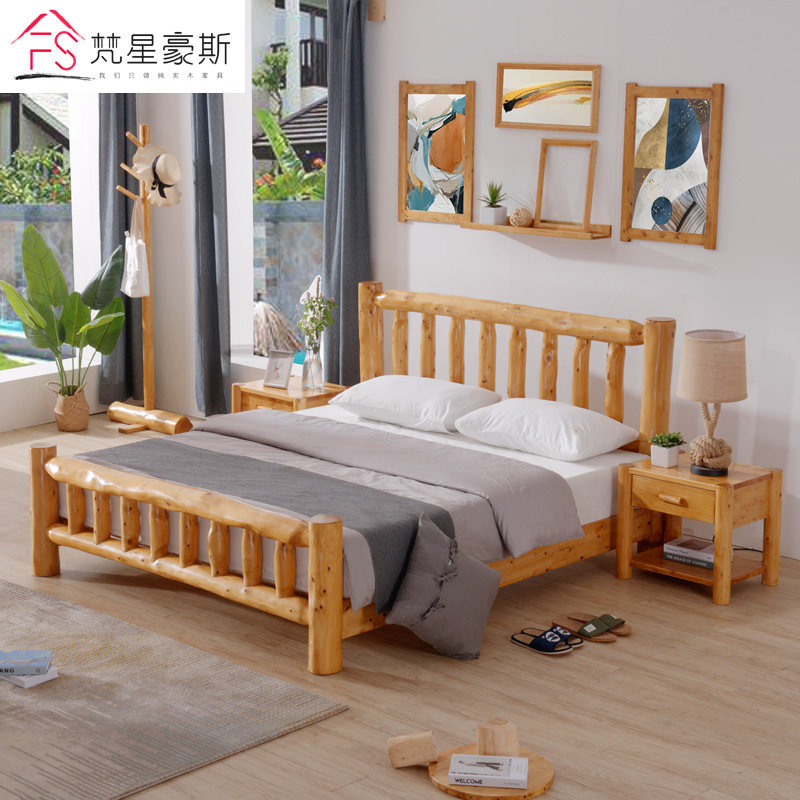 Full solid wood bed log furniture wood net red folk sleeping bed minimalist original eco double modern Chinese hardboard bed