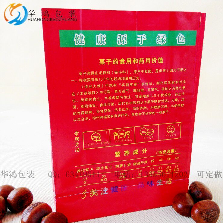 Sugar fried chestnut wrapping paper bag color wild chestnut bag Qianxi oil chestnut packing paper bag custom 50 pieces