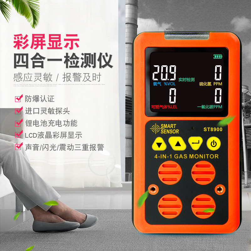 Himma AS8900 oxygen hydrogen sulfide H2S carbon monoxide combustible gas detector Four-in-one