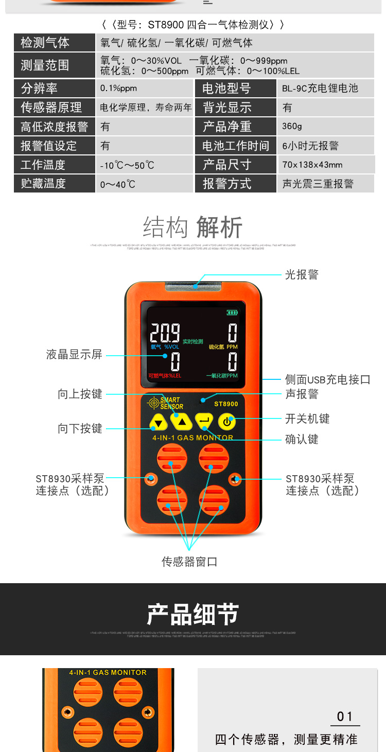 A series of four-in-one gas detection series