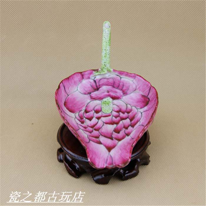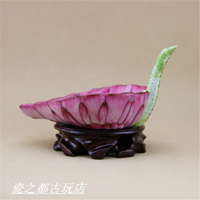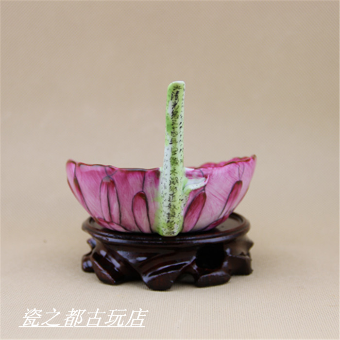 Large Clear Light Clue Engraving Powder Color Autumn Playground Cup Lotus Leaf Memorial Spade Full Hand Imitation Antique Porcelain Ancient Play Antique Pendulum