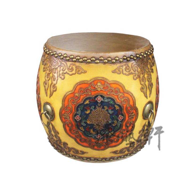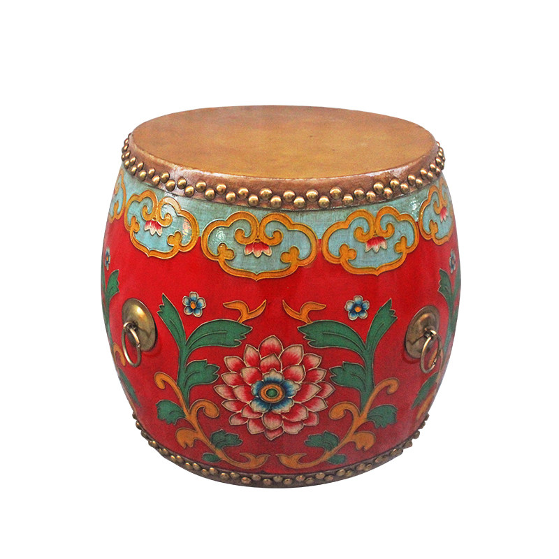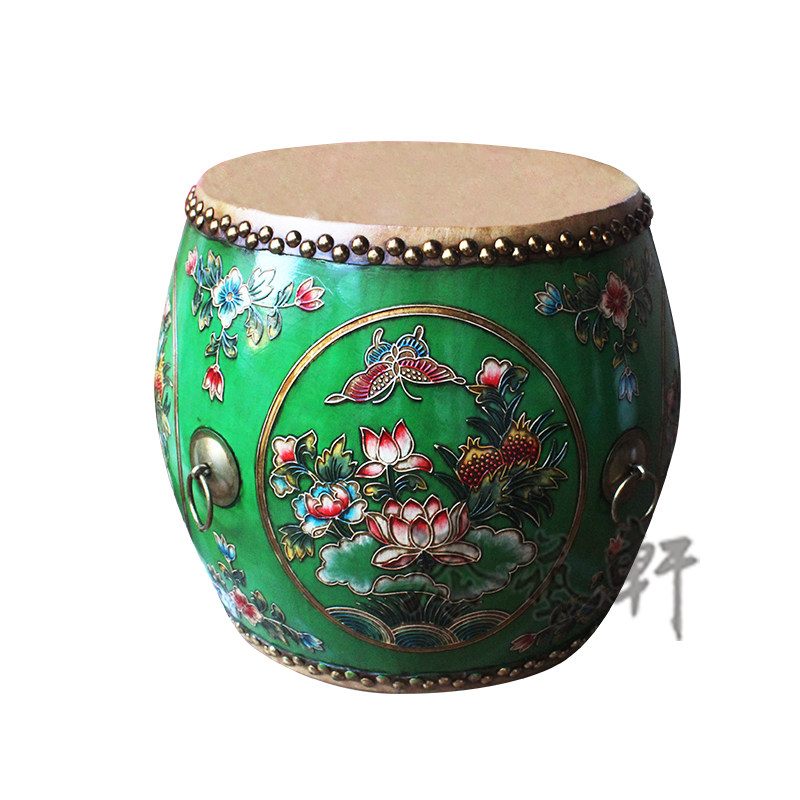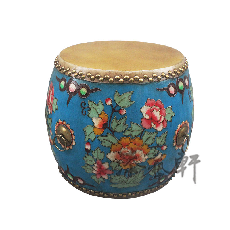 Creative Chinese pastoral painted drum stool solid wood cowhide old stool change shoe stool makeup chair fashion round stool low stool