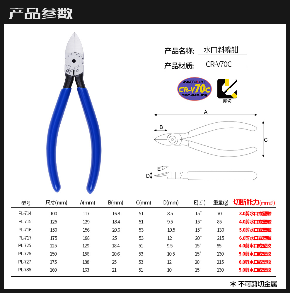 Japanese horse water port pliers PL-725 PL-726 slanted mouth pliers 6-inch sloped pliers diagonal-mouth pliers cut pliers