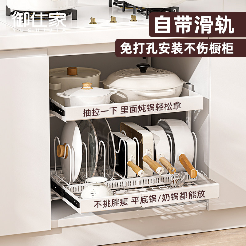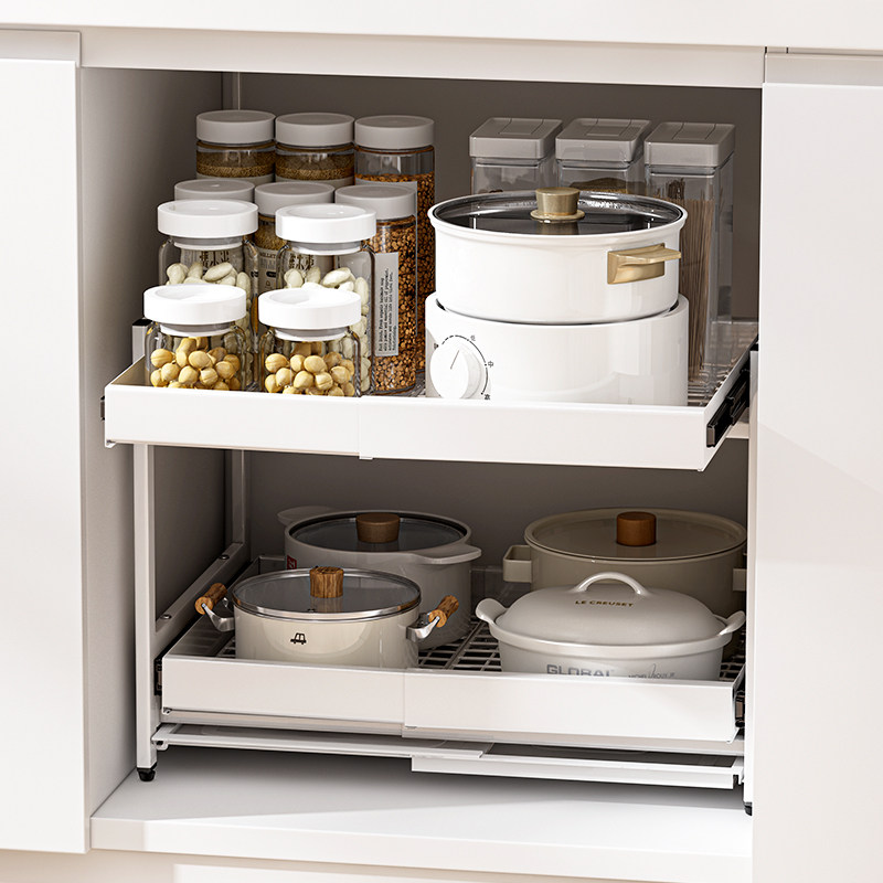 (Special for good things experience, do not shoot) Pull-out pot racks are free to install telescopic integral cabinets for storage and pull-out baskets