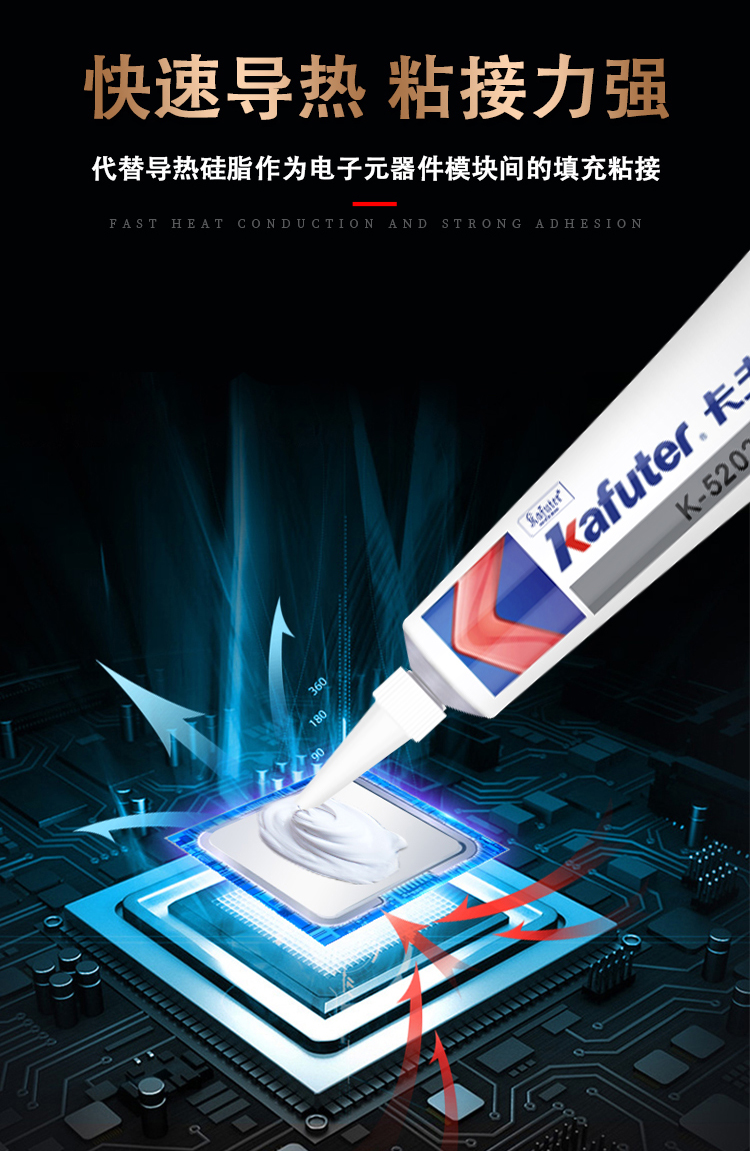 Kraft K-5202 thermal conductivity silicone coefficient 0 8CPU electronic bonding heat dissipation adhesive meets national VOC standards