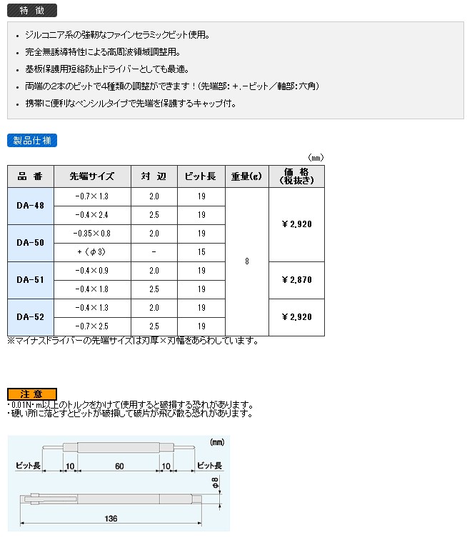 Japanese engineer ENGINEER DEBUGGING PEN DA-48 DA-48 DA-50 DA-51 DA-52 DA-52 CERAMIC SCREWDRIVER