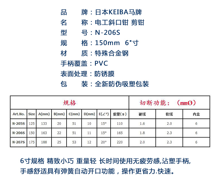 Original Dress Horse Keiba 6 Inch Slanted Pliers N-206S Electrician Diagonal Spout Pliers N-205S N-207S