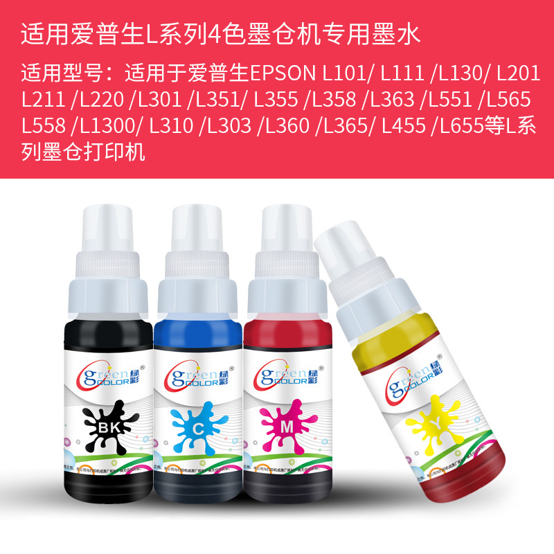Green color compatible Epson 672 series ink for L310 L313 L358 L351 L353 L455 L1300 inkjet printer with dye 70ml image ink set