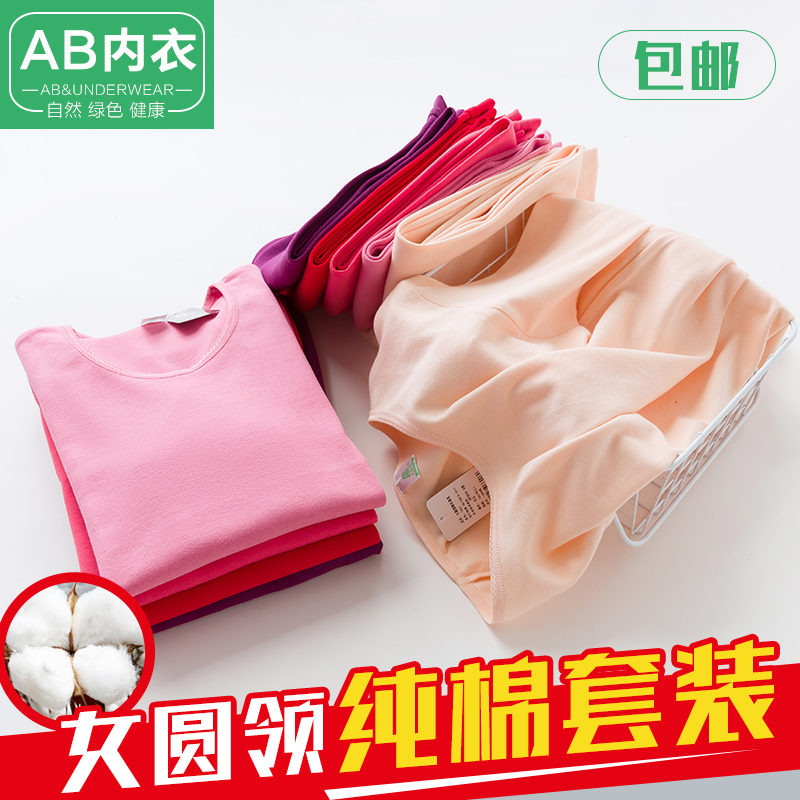 AB Underwear Lady Autumn Clothes Sanitary Pants Suit Thin Bottom Pure Cotton Sweatshirt Round Collar Middle Aged Full Cotton Warm Clothes T662