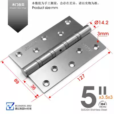 Hong Kong Yubao wide 5 inch 304 stainless steel door hinge silent bearing hinge S5353 monolithic price