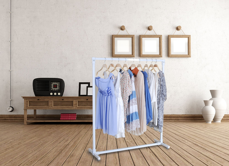 Single bar landing coat rack white drying rack balcony drying rack indoor hanging rack thickening hanging rod black