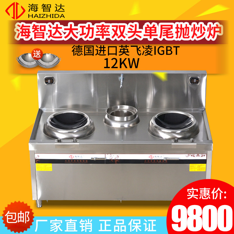 Hizhida commercial induction cooktop high-power induction cooker double-head single-tail electromagnetic small frying oven 12KW double-head furnace