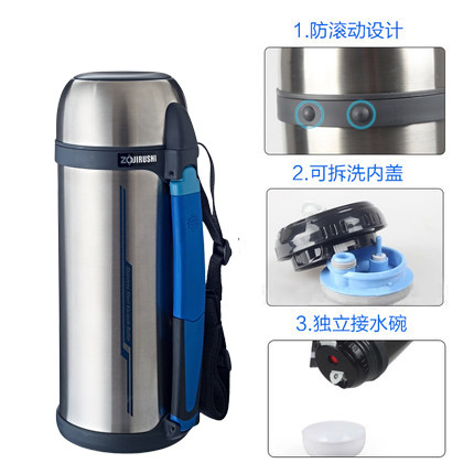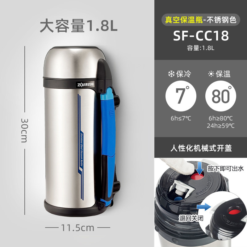 Japan Zoji imported large capacity 1.8L stainless steel thermos pot outdoor travel pot portable strap water bottle CC18