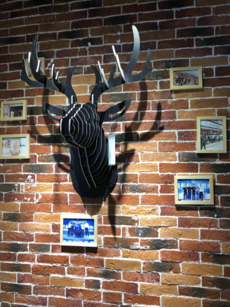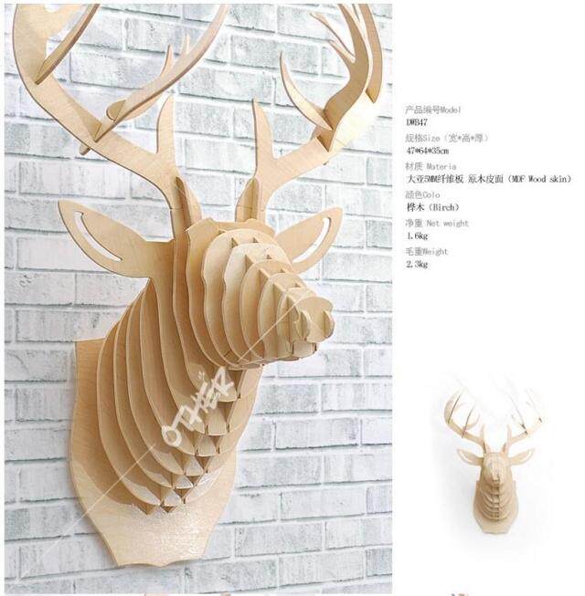 Wooden elk head wall hanging animal head elk head decoration creative furniture wall decoration antler alley